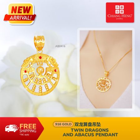 916 Gold Gold Coin CZ Abacus Pendant