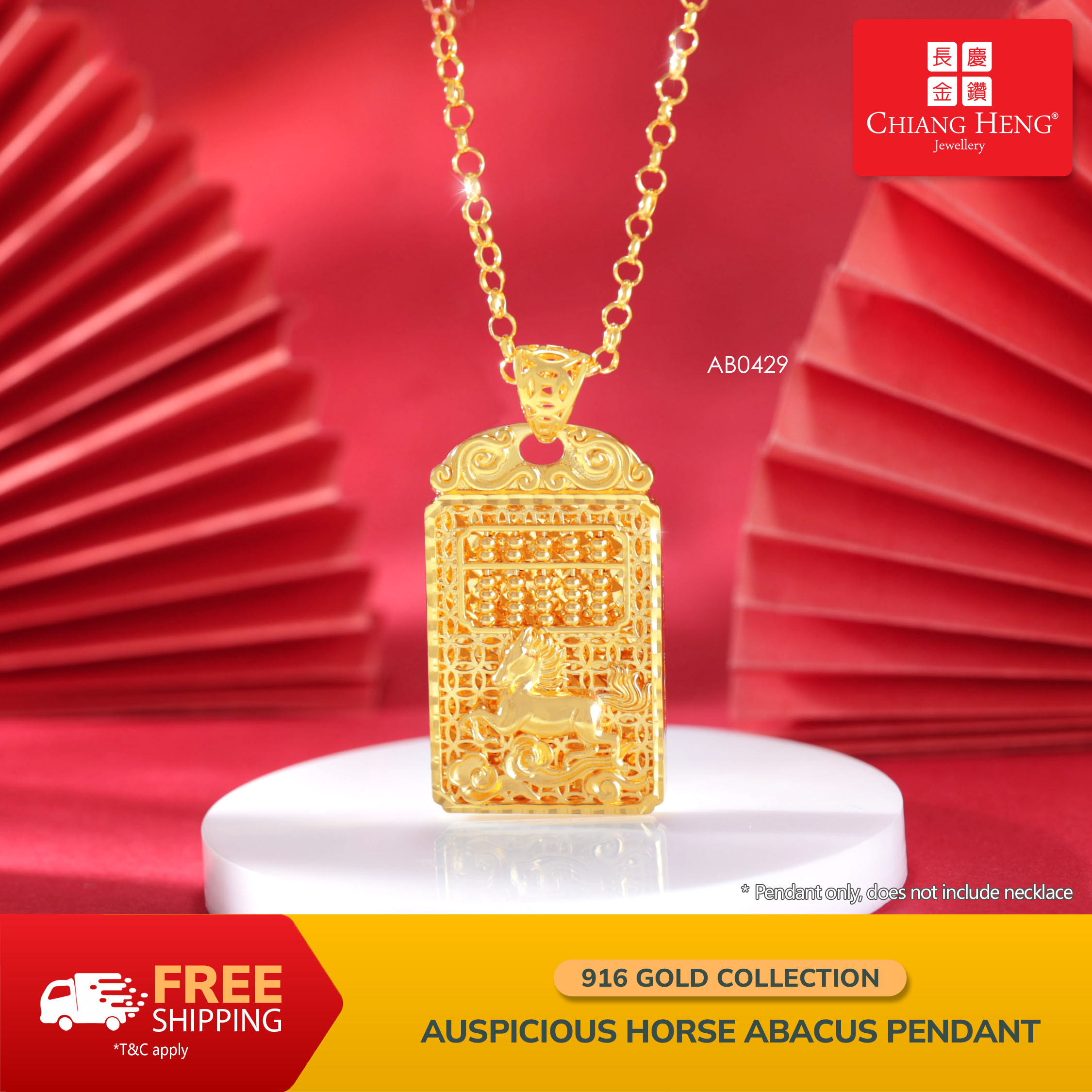 916 Gold Auspicious Horse Abacus Pendant