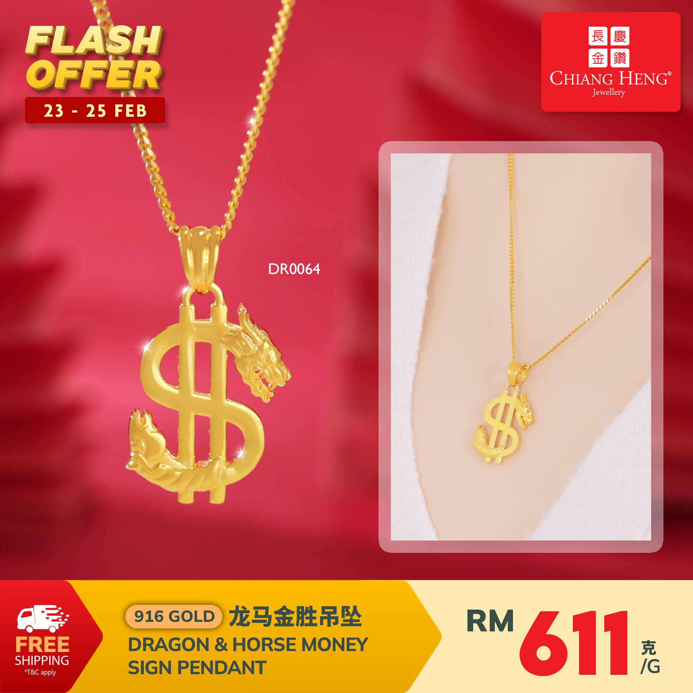 916 Gold Dragon and Horse Money Sign Pendant