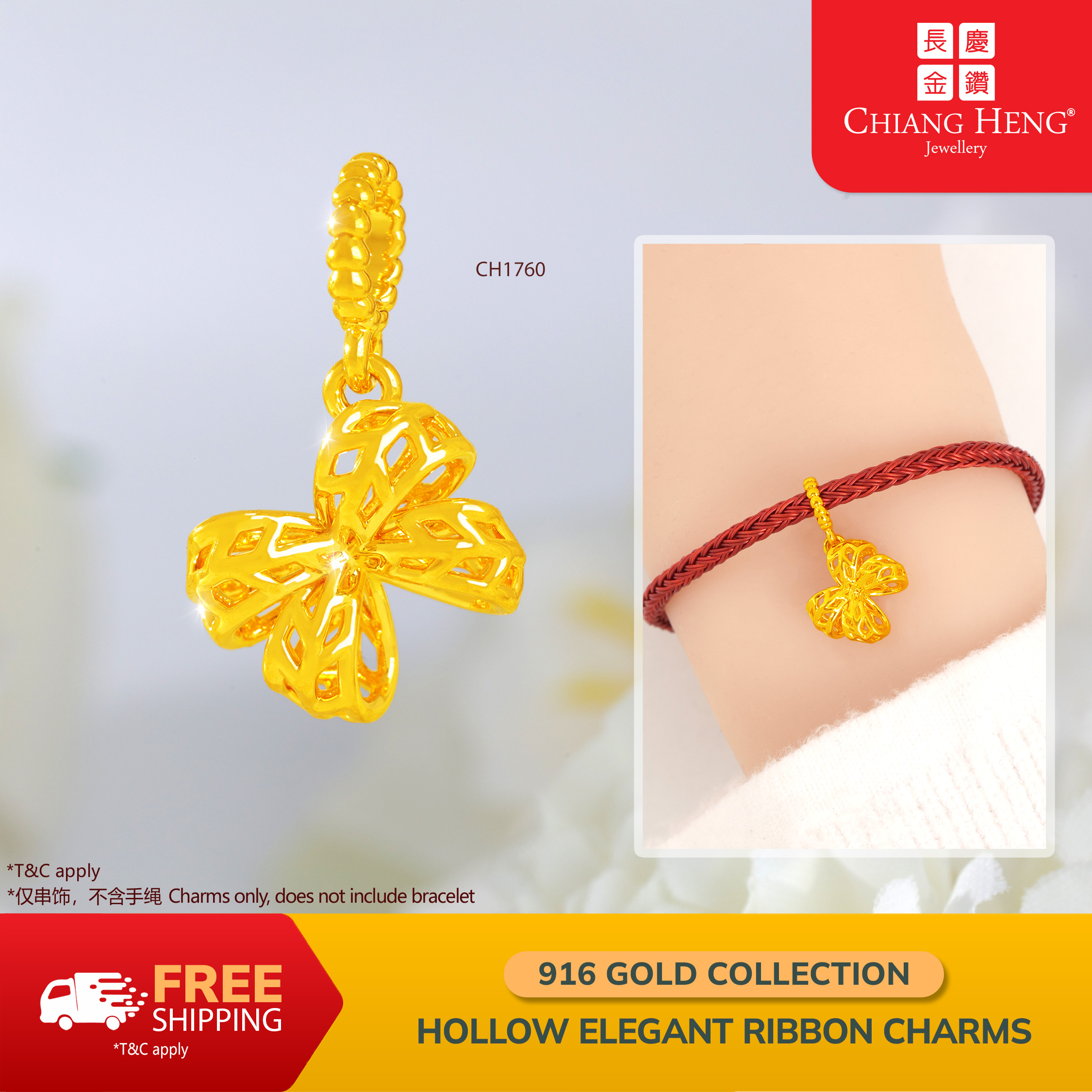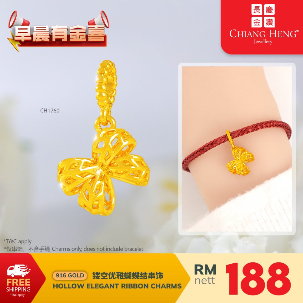 916 Gold Hollow Elegant Ribbon Charms