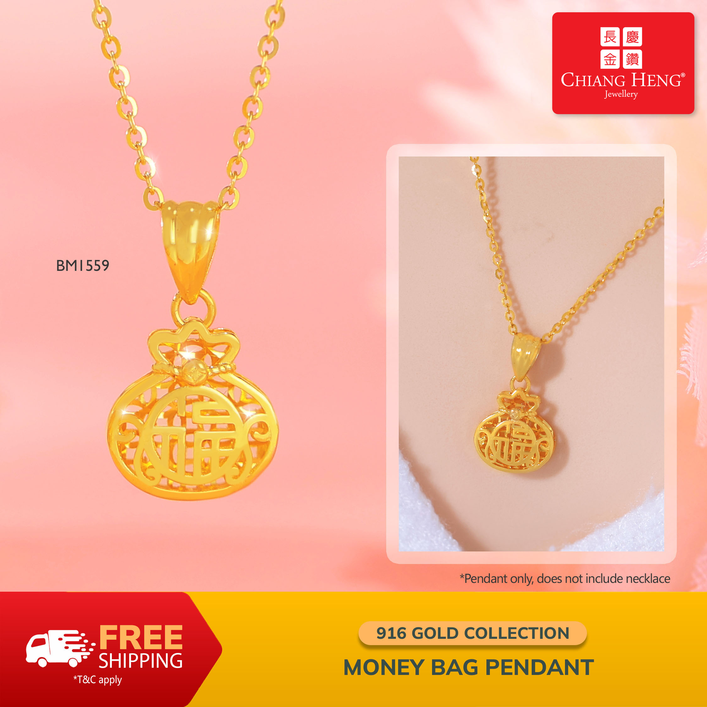 916 Gold Money Bag Pendant