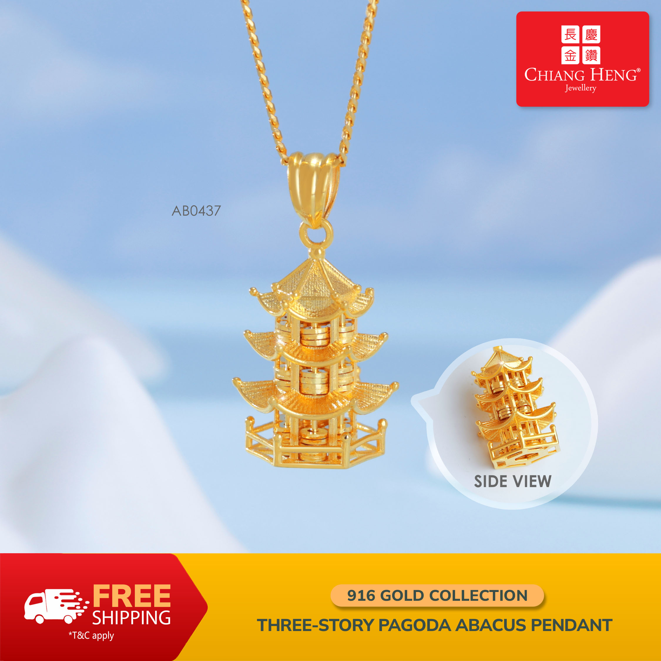 916 Gold Three Storey Pagoda Abacus Pendant